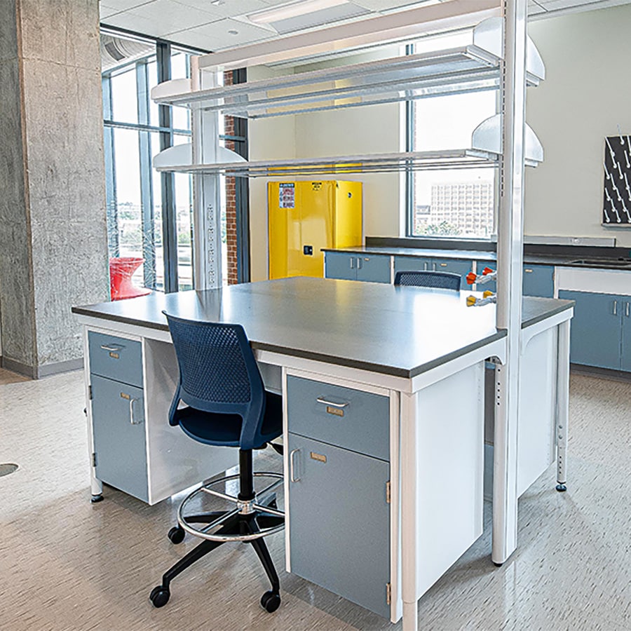 As flexible laboratory furniture the Gemini System can be configured as single or double sided with an incredible number of options in counter top, shelving, services, and cabinets. This system is easily interchangeable in so many variations it is perfectly suited for new and renovation projected. This flexible work station will stay with your laboratory for years to come and evolve with the changing needs of your lab.
