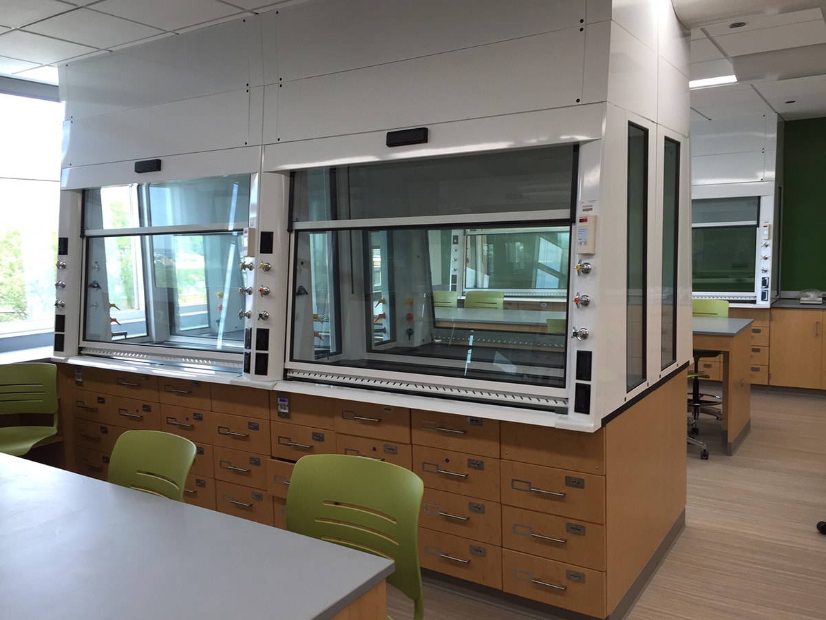 The Solution Series Solution Work Station laboratory fume hood’s design allows for back-to-back and side-by-side configurations for flexibility in designing undergraduate teaching and learning labs. It is available in varying sizes from a worktop width of 48″ with a hood opening of 37.5″ to a full 72″ worktop with a hood opening width of 61.5″. Since the point of a fume hood is to keep people safe, we install front-loaded valves with plumbing outlets within arms’ reach, while your head is outside of the sash.